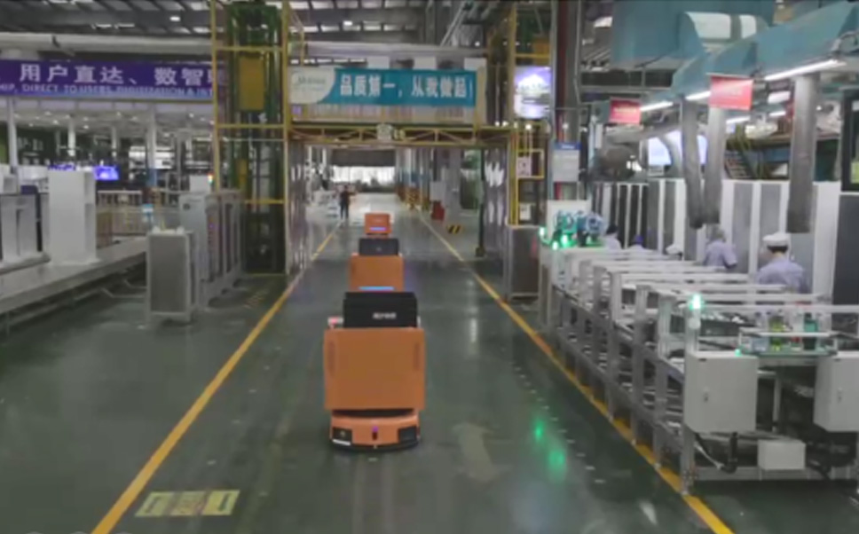 为车载冰箱物流配送打造的智能解决方案,,,包含产中物流通过潜伏举升AMR搬运至线边,,,产后成品物流智能仓储,,流程包含产中物流智能齐套入库,,,,线边安灯叫料AMR智能配送至线边,,,,成品入库、、、出库,,通过无人堆高车机器人,,智能仓储管理替代人工作业管理,,,,实现更高存储、、、、更高效率、、、更具柔性化的解决方案。。。。